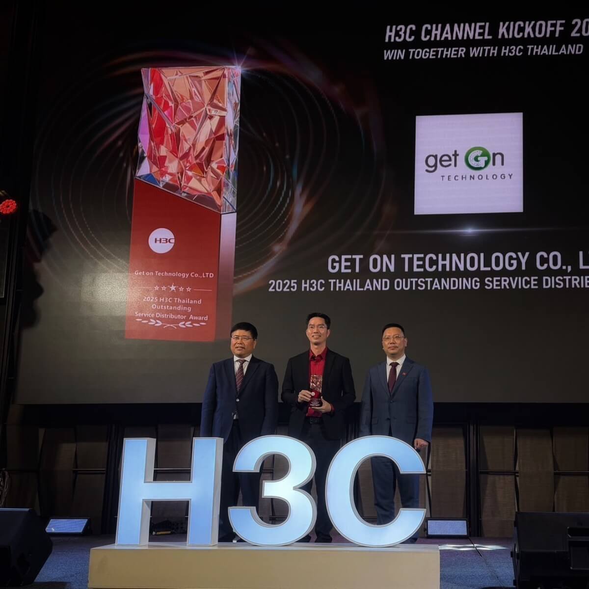 อีกหนึ่งความสำเร็จของเรา Get On Technology ได้รับรางวัล ” 𝗢𝘂𝘁𝘀𝘁𝗮𝗻𝗱𝗶𝗻𝗴 𝗦𝗲𝗿𝘃𝗶𝗰𝗲 𝗗𝗶𝘀𝘁𝗿𝗶𝗯𝘂𝘁𝗼𝗿 𝗔𝘄𝗮𝗿𝗱 ” จาก H3C เพื่อยกย่องความโดดเด่นด้านการให้บริการและความเป็นเลิศในการเป็นพันธมิตรทางธุรกิจ
